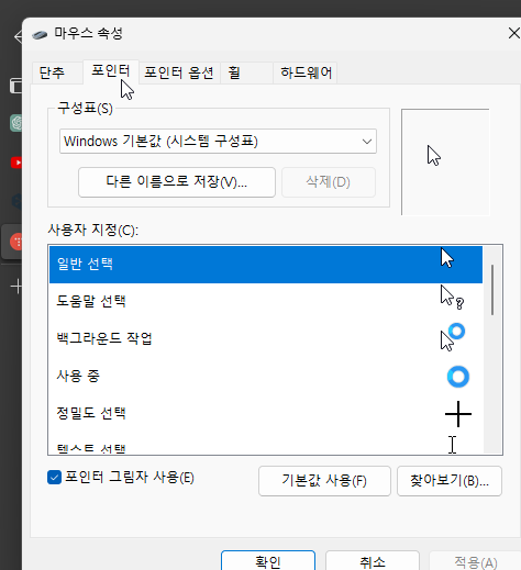 - 커서 스타일 변경: Windows "제어판 > 마우스 > 포인터" 탭에서 커서 스타일을 변경하거나 크기를 조정하여 가시성을 높일 수 있습니다.